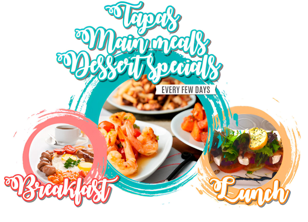 Tapas, MAin meals, breakfast, lunch & dessert specials